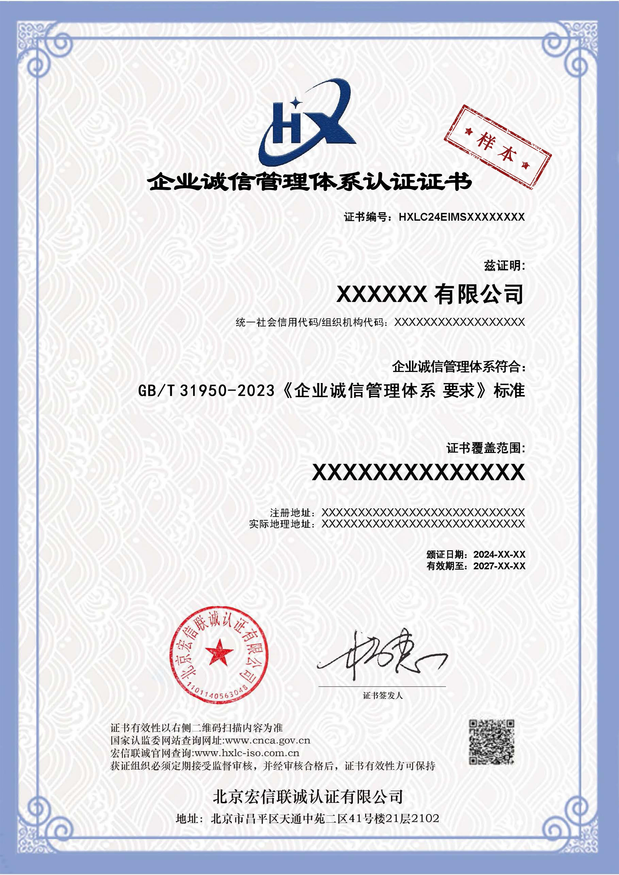 本认证规则归北京宏信联诚认证有限公司所有,北京宏信联诚认证有限公司对其拥有最终解释权。