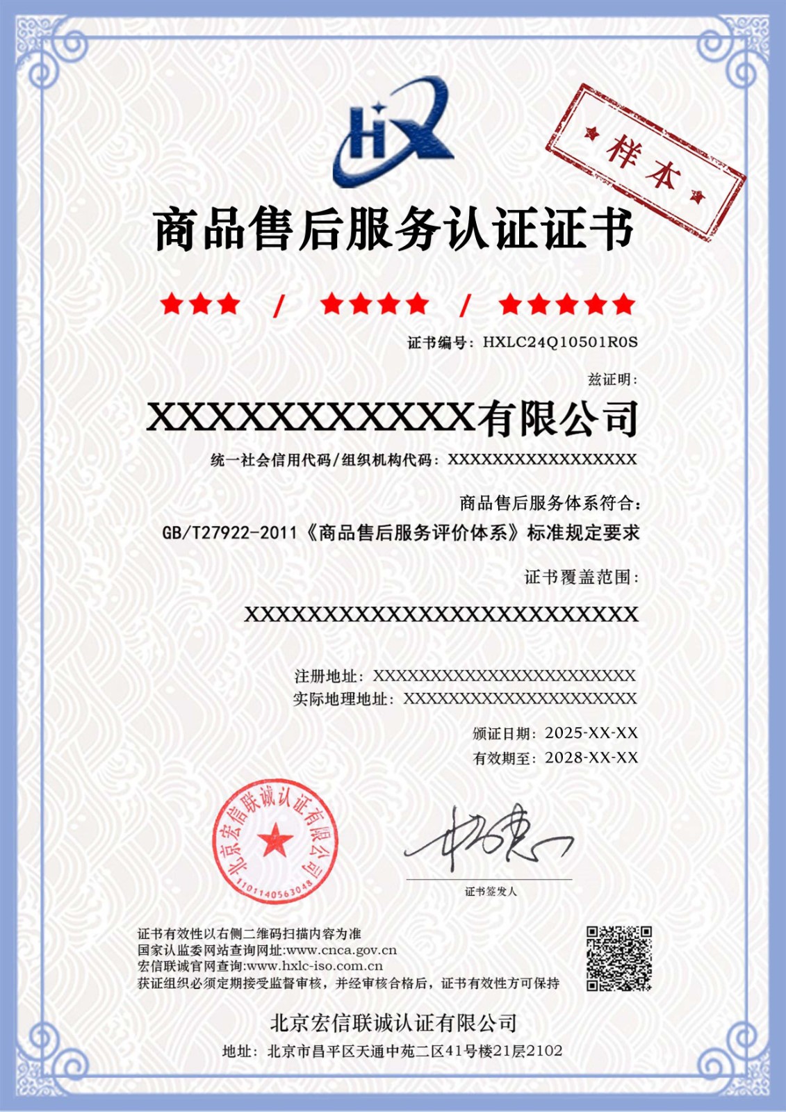 商品售后服务认证证书
